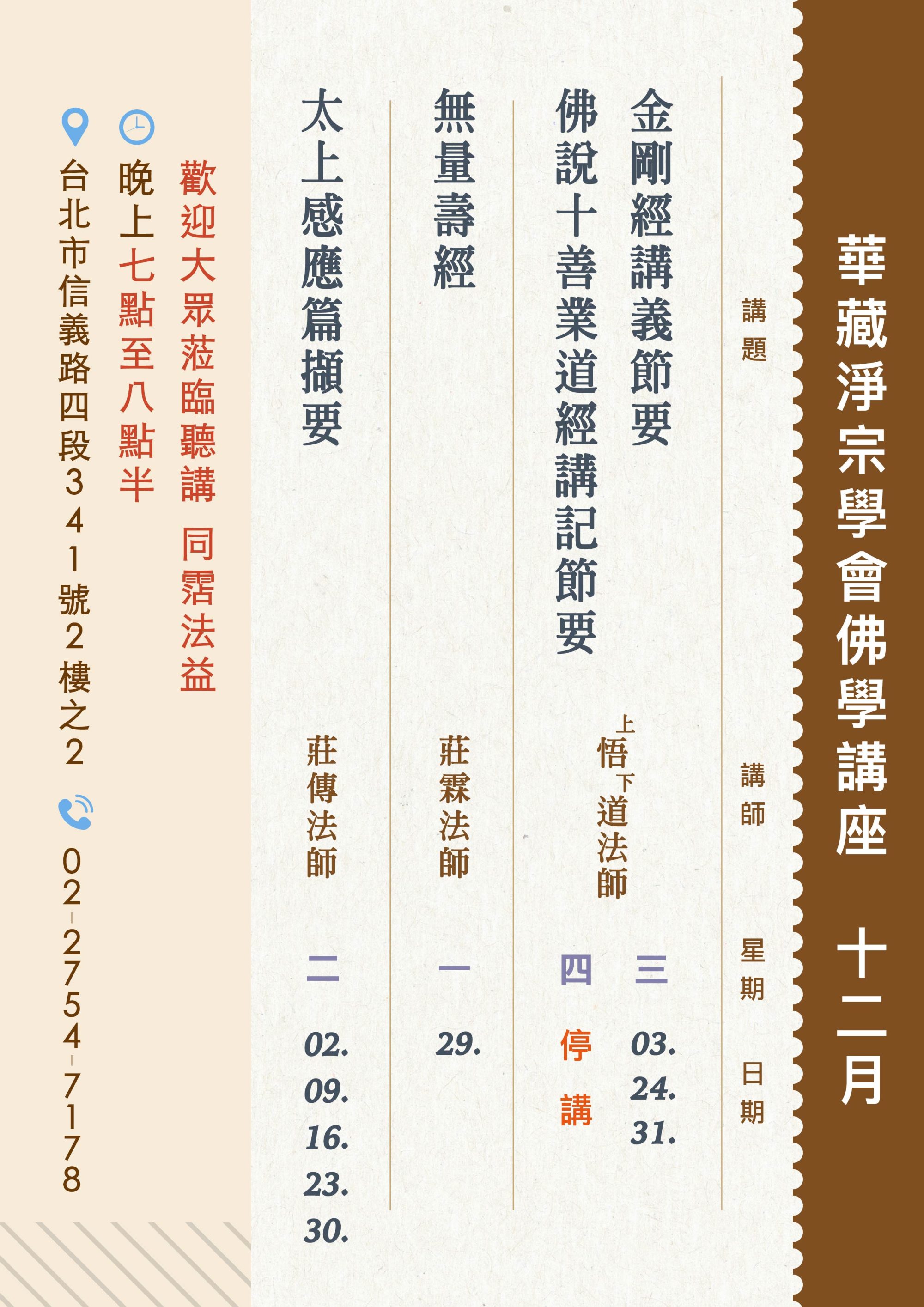 華藏淨宗學會佛學講座資訊
