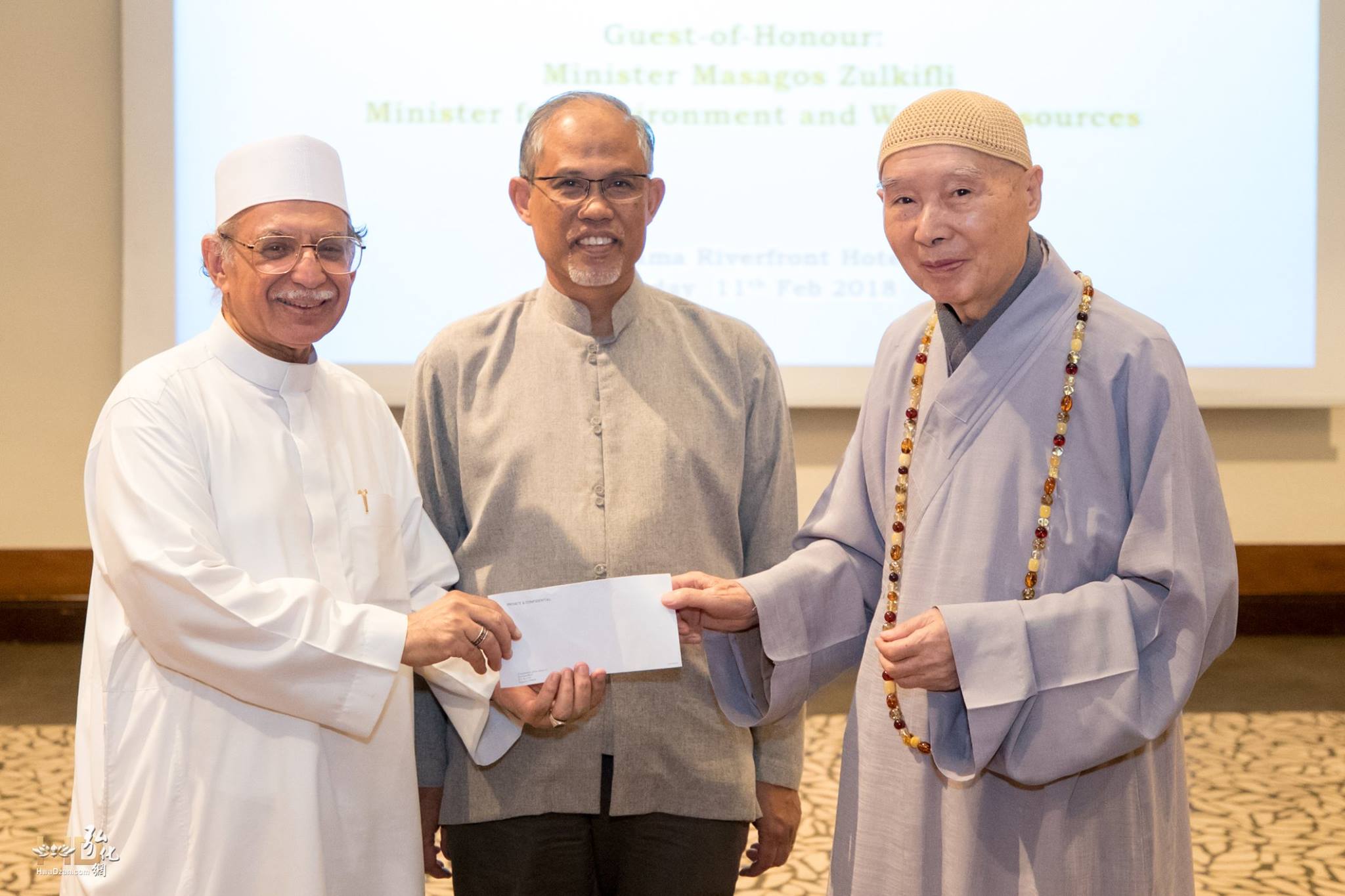 最後,在馬善高部長的見證下,淨空老法師捐贈二十六萬元新幣給新加坡宗教聯誼會(Inter-Religious Organization;IRO)。老法師說,我取之於新加坡,用之於新加坡。