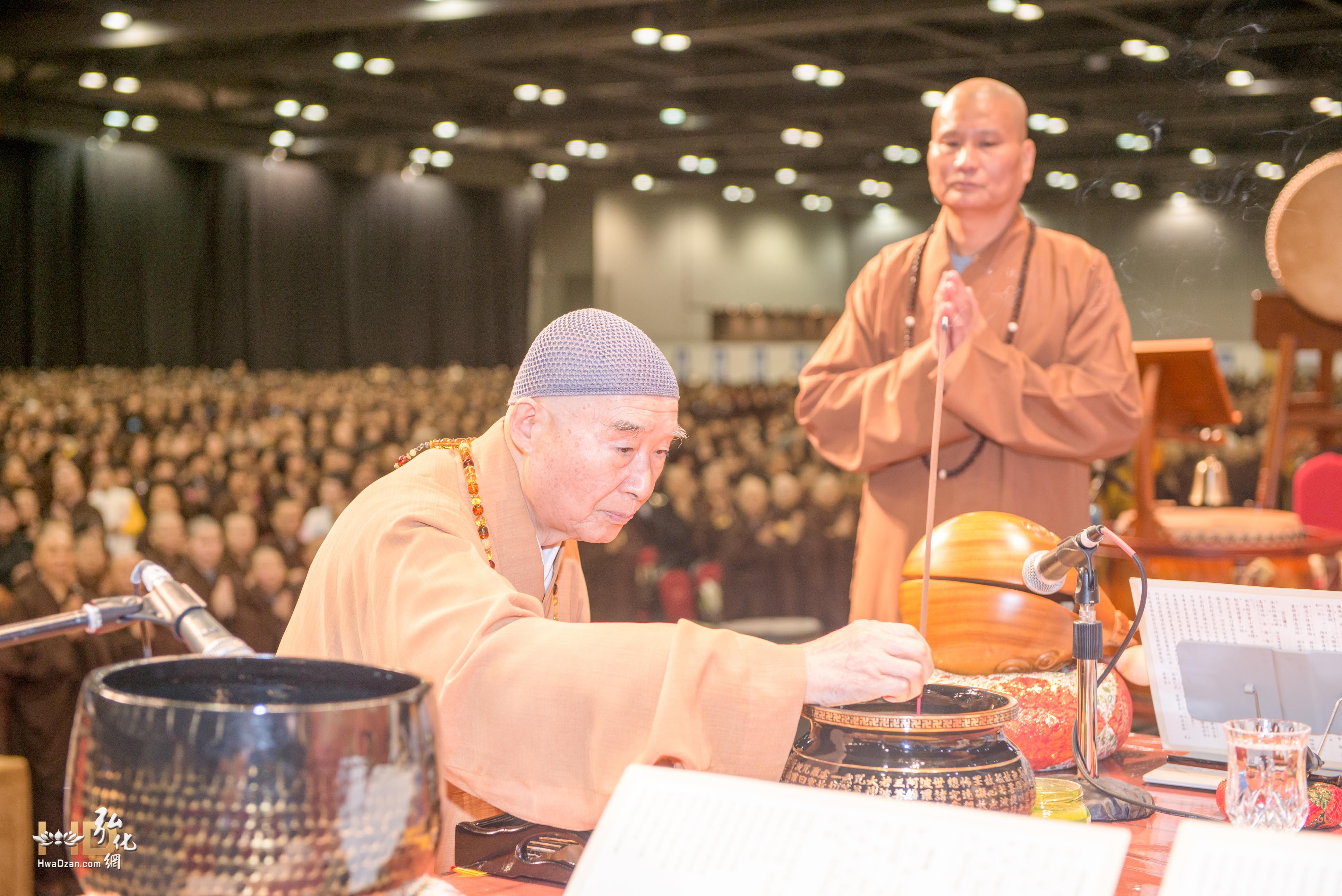 淨空老和尚於佛前上香